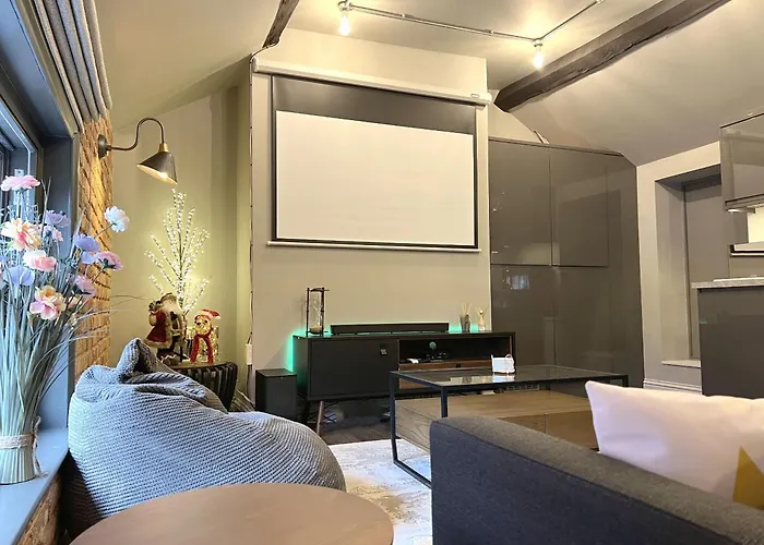 Das Luxury 2 Bed Penthouse - 4K Projector - Snug Room - En Suite bietet einen perfekten Rückzugsort im Herzen von Birmingham. Mit modernem Design und ausgezeichneter Ausstattung überrascht dieses Penthouse sowohl Geschäftsreisende als auch Urlauber. Der Aufenthalt in dieser stilvollen Unterkunft wird durch ihre Nähe zu beliebten Sehenswürdigkeiten noch attraktiver.